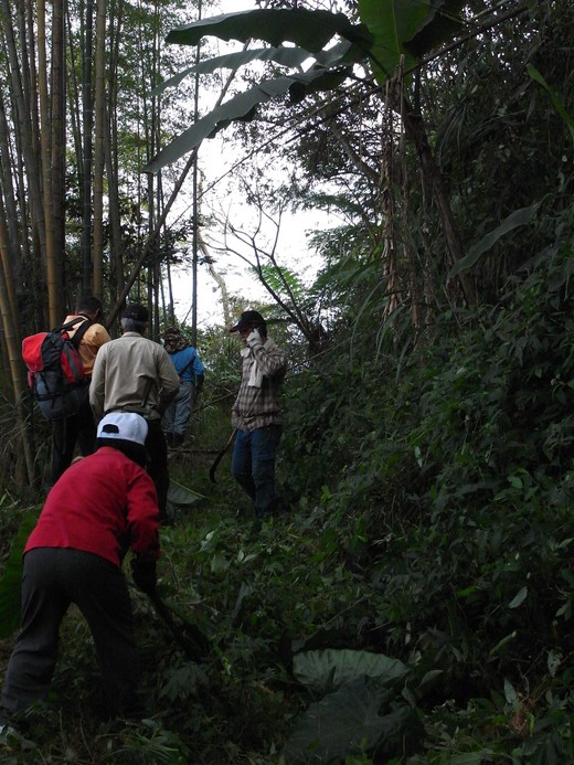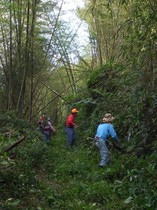 墾荒是件有趣的事~~村民們各個手拿鐮刀,一邊俐落地將東倒西歪的竹子,雜草清除乾淨,一邊訴說著他們的故事!!回想起以前這條步道是孩子們到交立坪上課必經的路程,每天五六點天還沒亮就得背著書包匆匆走上漫長道路,年紀小的孩子有時走到一半肚子餓了,身為姊姊的就會把便當分給弟弟吃!!!這條幽靜小道一走就是六年,也在老一輩人的心中留下深刻情懷!!但隨著大馬路的開通,這條古道漸漸被人遺忘而荒廢,如今有機會再現古道美景,村民們當然也充滿熱忱投入墾荒行動!!!