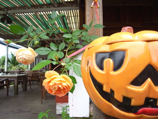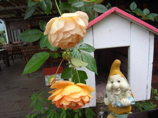 看看這叢古奧斯汀玫瑰將小矮人的家點綴的多麼美麗~也難怪小矮人笑的樂開懷!!!