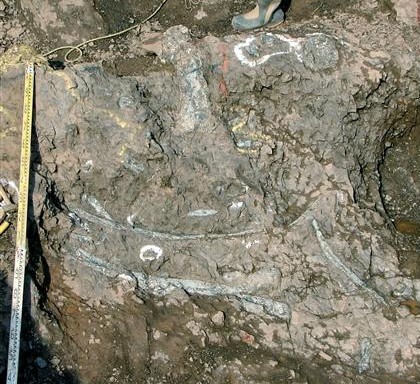 日本兵庫縣立「人與自然博物館」於今(7)日發表,在該縣丹波市所發現的丹波恐龍化石,再度挖出好幾根肋骨和腰骨,加上2006年發現頭骨和尾骨,有可能是日本目前保持狀況最良好的成年恐龍全身化石。