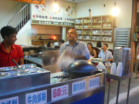 去烏來老街,看到這一攤,覺得很好奇,加上很喜歡吃印度餅,就跟老闆聊起來。誰知他猛笑一點也不開口。奇怪,不懂中文,怎麼做生意呢?