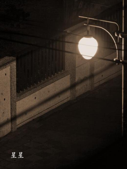 深夜的台北城緩緩飄起了細雨,一個人守著陽台心亂亂飛、念隨處飄,陪伴我的只有人行道上孤單的街燈,就這樣抓起了相機,胡亂按了快門,寫了這樣的文字……。