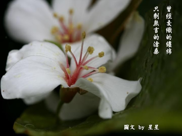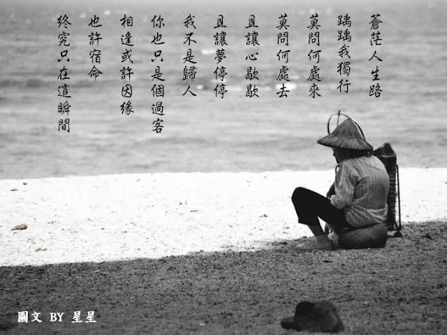 多年以後走入攝影世界,開始創作影像文字,這樣的心情再度躍然心上。我渴望創造一種屬於自己心情紀錄的攝影,於是我愛上了用鏡頭說故事的取景感覺。「妳是國文系畢業的嗎?妳是老師嗎?」每每攝友看了我的影像文字後,都會好奇的問上這麼一句,等到清楚了我畢業的科系,和從事的英文秘書工作後,接著就會很訝異和開玩笑的說:「哇!妳寫得很好呢!妳還真會寫喔!」,哈!