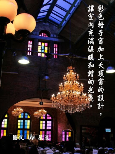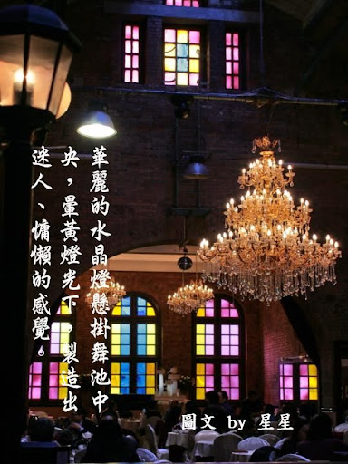 驀地,耳裡飄進了一陣典雅的音樂聲,望著站在原本是樓梯卻變成電梯口的服務小姐,我知道樓上應該就是我今天的聚焦景點:「大舞台飯店」。一踏上短短的電梯,我的驚訝聲又起,感覺我像是走進了50年代的夜上海,那個對我只是電影中的印象。高挑且雙斜的屋頂,配著彩色玻璃格子窗,浪漫的心思開始無限延伸囉!