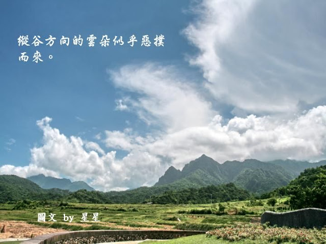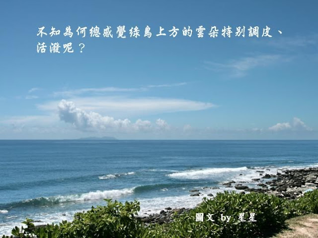 第一次如此細細開車走過東海岸,真是感覺好美啊!尤其是台東海岸線的海面,有如藍寶石般的湛藍、清淨,搭上了那一如原住民熱情般的雲朵恣意起舞,整個畫面彷彿圖畫一般,讓開車行走其間的我,有如置身仙境,除了屢屢不絕的讚美聲和快門聲外,我更是打從心底的期許這樣的淳樸之美可以永遠的被珍惜和保留。