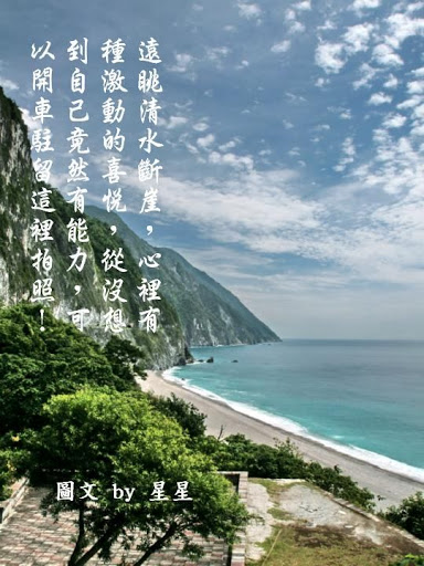 歡喜仰受天命 行住坐臥皆自在~~謝謝你的好分享 能夠在這裡望見旭日東昇 哇 感覺一定超棒 一個人的旅行真是很讚的心情 很寧靜很自在 天祥那一段我還沒開車走過 下回計畫從那走到合歡山 或是合歡山走到花蓮 這一段中橫很美喔 走在一個人的星空 於 2010/07/23 09:53回覆