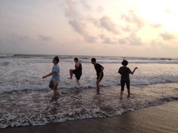 演出製作會因導演及劇本需求到不同地方排練,跟著【A Day】排練到了觀夕平台,從夕陽西下到夜晚來臨,看著海浪不停歇反覆地打上岸邊,與導演及演員一起在海邊工作,導演引導演員面對大海,大聲地說出自己最想要的是什麼,你呢?