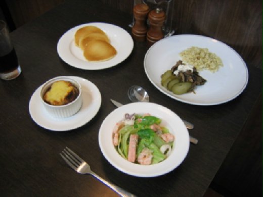 海鮮沙拉_羅宋炒牛肉_法式焗烤洋蔥湯_早餐煎餅
