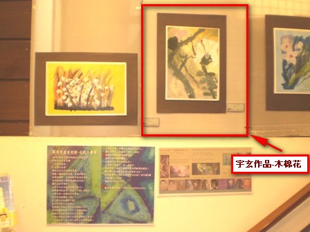 上個月蘇荷畫室的河馬老師告知,宇玄去年畫的一幅"木棉花"在北投何嘉仁書店展覽,原來是蘇荷和何嘉仁的合作畫展,老師選了幾幅與花有關的主題參展,沒想到玄的畫雀屏中選了,我們都很開心,特別到何嘉仁去拍照留念!