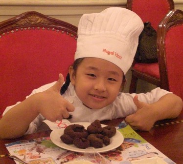 她是第一個完成的小朋友,很快送進廚房去炸,不久後一盤自製的巧克力甜甜圈就出爐囉!最後每個小朋友還得到一張結業的小獎狀呢!