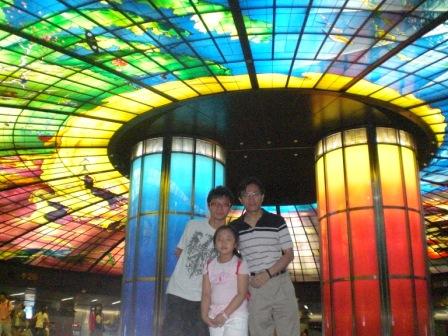 接著前往高雄捷運紅、橘線交會O5R10美麗島站「光之穹頂」,這是到高雄非得一看的世界級玻璃藝術,由義大利藝術家水仙大師(Maestro Narcissus Quagliata)耗費四年半所創作,結合美麗島事件追求民主自由的過程,表達重生與包容的內涵,水、土、光、火四區塊,代表誕生、成長、榮耀、毀滅。雖然沒有搭乘捷運,但得以一窺大師作品並拍照留念真是彌足珍貴!