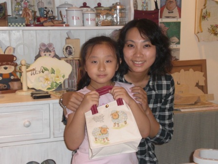 我們在夢時代七樓美食街用午餐,二町目,是日式炸豬排專賣店,重點是憑學生證打八折,這下哥哥的證件終於派上用場啦!除了豬排我們也享用了和風高麗菜絲沙拉,相當清爽可口。最讓宇玄開心的是玩了DIY手作拼貼,在七樓夢的手作屋花了400元,做了一個可愛的手提袋,在老師悉心指導下順利完成,用美麗的餐巾紙就將素面的手提袋裝點的可愛極了!玄說要送給阿嬤當禮物,當場大家都說她乖巧呢!我們也多買了一份材料,決定回家再玩一次。