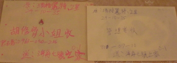 阿嬤先前給了她一些沒有用過的舊卡片,她開心極了,因為想收信,於是把卡片拿來寫,我和爸爸各一封,給爸爸的卡片裡還要求爸爸畫畫給她,同時,強調希望收到回信,十分可愛。接著,她不斷的去檢查自己的信箱,抱怨怎麼都沒人寫信給她,我和爸爸的一致回答都是還沒時間寫,請她耐心稍候。等她洗澡時,我和爸爸各寫了一封信,爸爸當然如她所求的畫了一小幅畫,我則勉勵她星期一開始就是小三生了,希望可以不再賴床,用功學習,以求有更好的表現!