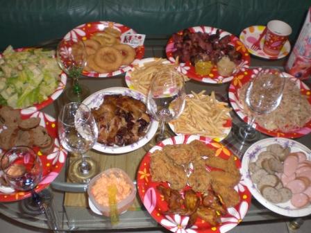 當天我提早下班,叫了外賣的巴科隆德國豬腳餐、肯德基炸雞和蛋塔,妹妹做了玉米濃湯和鮪魚沙拉,並提供cheese和紅酒,我再做了一道凱薩沙拉便一切就緒。吃吃喝喝好不熱鬧,Zoe更帶著她的薩克司風為我們演奏,大家都陶醉在優美的樂聲當中,我和老公隨著音樂跳起慢舞,重拾許久沒有的浪漫情懷。