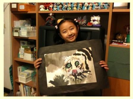 楀璿的兩幅作品都十分生動,最特別的應該是那綠色的大眼睛,她說她看老虎的眼睛就是綠色的~哈哈!