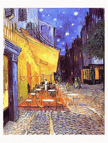 就是這幅─「夜晚的咖啡座(Cafe Terrace)」,梵谷一八八八年的作品,距今一百多年了。這是梵谷在阿爾城的心血之一,阿爾城位於普羅旺斯省,正緊臨著蔚藍海岸省,都有著同樣的海岸風情。