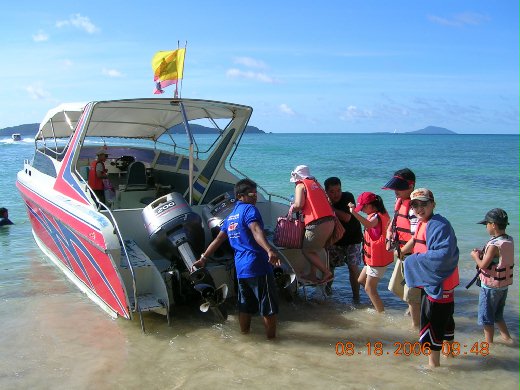 這一天的行程是海上活動,全家都穿上了短褲、花襯衫,頭一個目標是安達曼海上的珊瑚島。較刺激的香蕉船與拖曳傘就在岸邊的浮檯上進行,小禾子跟同團的六、七個小孩都hight到家了。