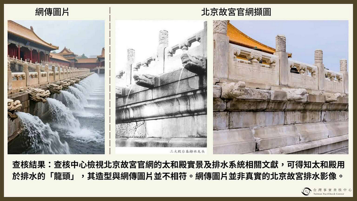 筆者(夫子) 第一次看到這北京故宮「千龍吐水」網圖,是在七月底的 LINE 群組,當時覺得石雕龍頭怪怪的,怎麼跟自己多年前去北京故宮看到的不一樣?當時沒有多想,心想北京故宮這麼大,可能自己沒看到這區。