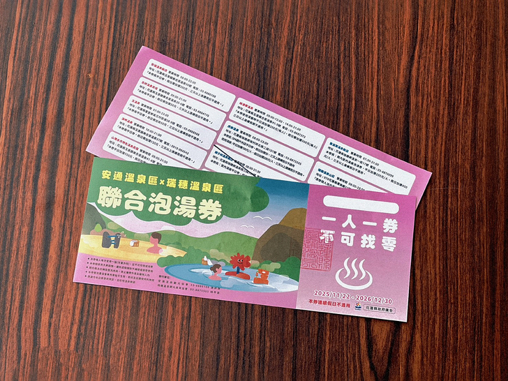 觀光處長余明勲強調,花蓮縣政府感謝全國鏟子超人所推出的「鏟子超人泡湯券」,邀請全國民眾只要能出示任何可證明參與光復水災復原重建的照片或相關佐證,即可於12月20日晚間6點起在瑞穗天合國際觀光酒店的「花湯市集音樂會」服務台,或是至12月21日止每天下午5點到晚上10點在瑞穗溫泉公園的活動服務台兌換瑞穗、安通溫泉聯合泡湯券,讓默默付出的「英雄、美人與超人」都能獲得一份溫暖回饋。瑞穗溫泉公園泡腳池與燈飾裝置亦持續於每日17:00至22:00免費開放至12月21日(日)為止,誠摯邀請民眾把握溫泉季最後週末,白天騎旅、夜晚聽歌、泡湯暖身,一起在花蓮為今年畫下最溫暖的句點。
