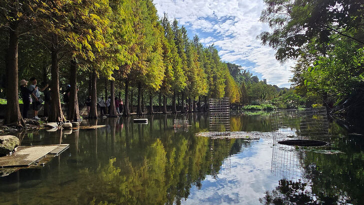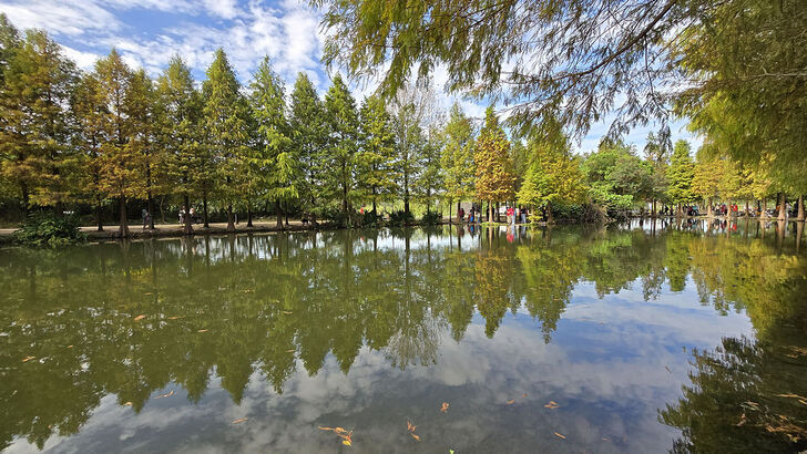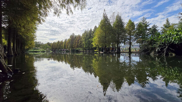 桃園大溪 月眉人工濕地生態公園 落羽映照 湖光倒影浸山青