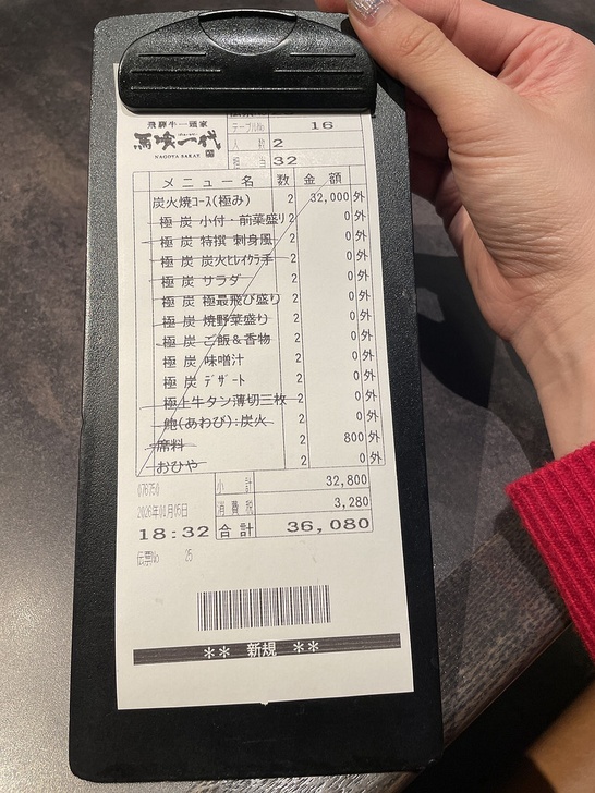 日本飛驒牛「極品」(Kiwami (Extreme Top Level) Hida Beef) 菜單,售價 JPY 16, 000 (不含席料、飲料、酒與消費稅)。