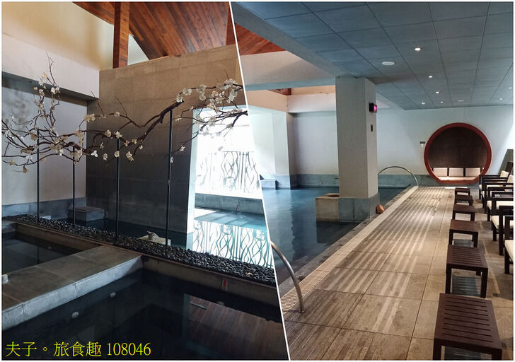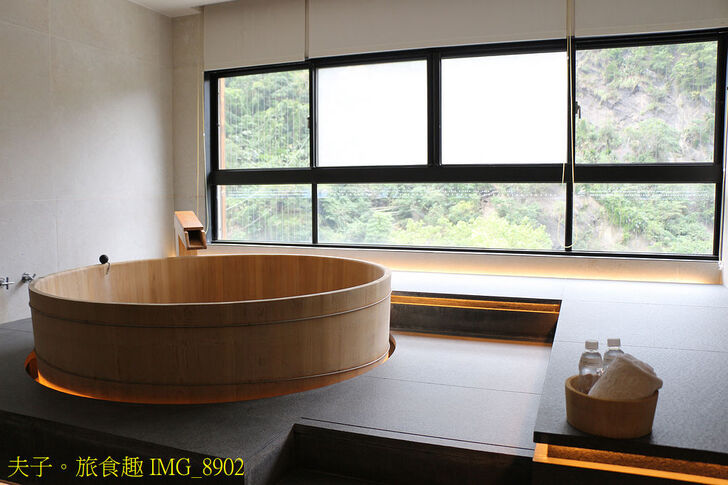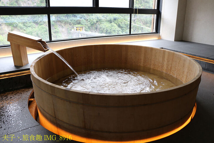 璞石麗緻溫泉會館的湯屋或主題客房泡湯都不接受預約,需要現場依空房安排。檜木桶湯屋臨南勢溪景觀,大圓檜木桶映襯窗外翠綠山景,熱氣中瀰漫檜木香氣。
