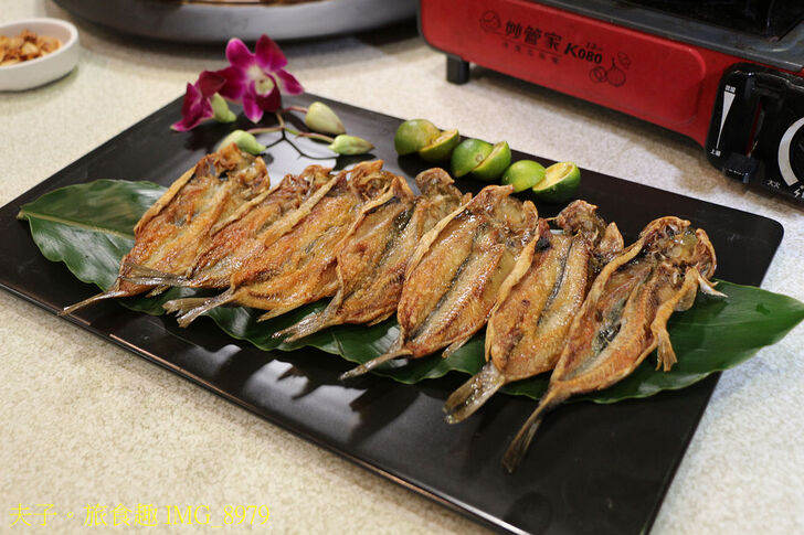 苦花過夜 (苦花魚一夜乾),使用烏來南勢溪所孕育出來的水中螢火蟲「苦花魚」,將魚骨去除後進行鹽味、馬告、刺蔥醃製,在經由高山冷風吹置一夜風乾熟成,形成的苦花魚一夜干,肉質鮮美、回甘及油脂優雅鱻味無比。