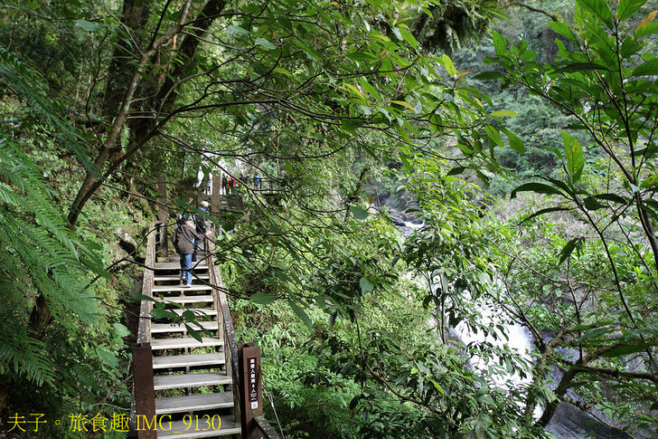 園區規劃有觀瀑步道、賞景步道與森林浴步道等三條步道,腳力好可串連形成一個 O 字環狀健行路線,其中觀瀑步道沿南勢溪而行,全長約 1,000公尺,前段 700公尺為無障礙油柏路面,平緩無坡可讓行動不便者以輪椅代步,輕鬆抵達樂水橋觀瀑平台 (照片),沿途可觀賞懸瀑傾洩的烏紗溪瀑布及水勢奔騰的內洞瀑布。