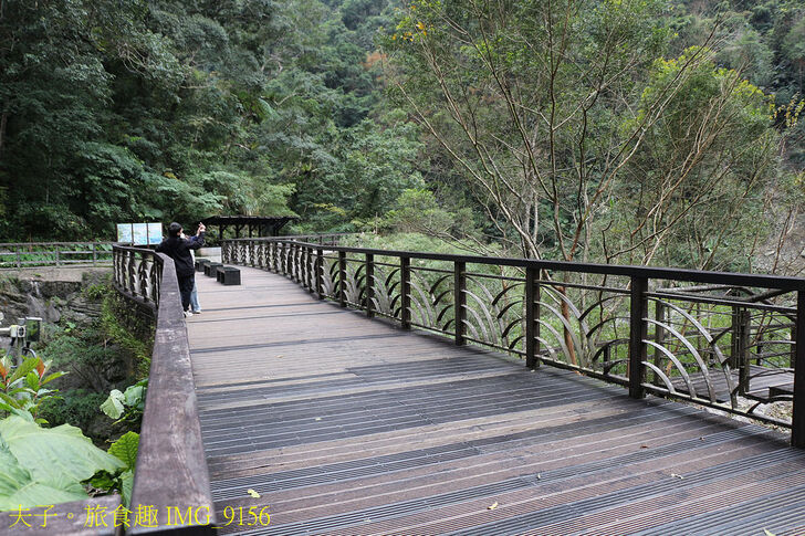 烏來林業生活館後方有一展望台,視線無遮蔽可側看烏來瀑布全貌與俯瞰南勢溪潺潺溪谷。
