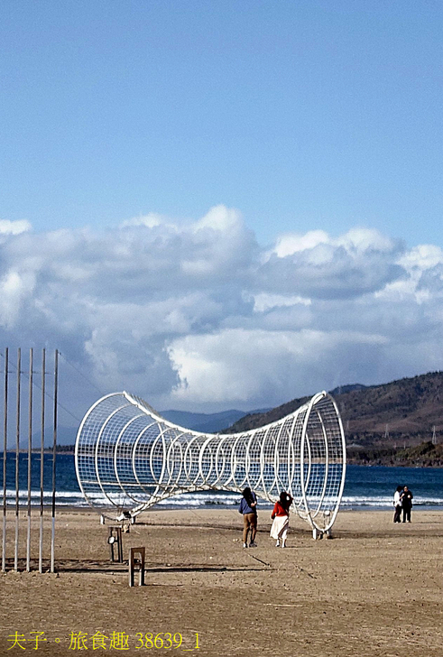 沿著海浪前行,藝術家在沙灘上打造不同形式的空間。風、海與沙的變化,讓旅人以新的方式重新連結海口,展開與地方的另一段對話。作品名稱:風的容器,一座坐落海濱的互動雕塑,藝術家鄭元東透過鋼管構築有機弧形結構,象徵風的流動與自由。觀者可在其中坐立、觀海、聆風,與自然共處。作品融合視覺與聽覺感知,讓風的存在被看見、被聽見,成為一場身體與環境交織的詩性體驗,是一處與自然相遇、沉思的容器。