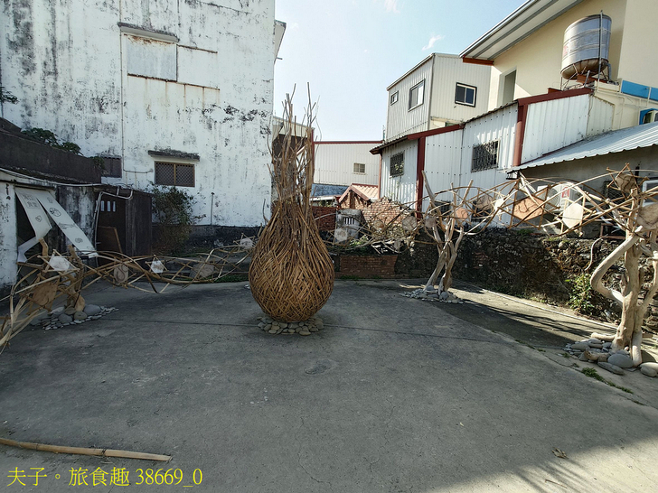 作品名稱:海口ㄟ風,鹹鹹的,藝術家陳淑燕作品以「風的線條」貫穿整座古厝,流動迴旋,最終於埕口凝聚成竹編火焰造型;線條中嵌有六角鹽結晶與染布布料,映現海邊歲月的滲透與記憶。鹹風,是海口的日常;染布的橘紅,是海人生命的熱度一風與鹽,共同構築這片土地的記憶與呼吸。