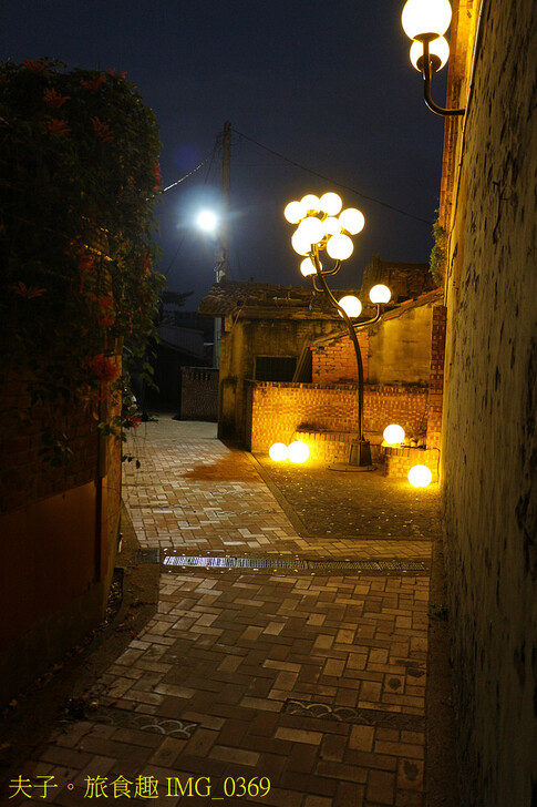 新銳藝術家石孟鑫為魚鱗巷創作|路燈樹」,靈感來自鹽水早年倒風內海的潮汐與風勢,讓許多路樹在歲月中傾斜生長。作品將台灣家戶常見的黃色門柱燈變形,模擬路樹傾斜生長的姿態,從街角的空隙中伸展,像是在訴說一段被海風推動過的身體記憶。小型的黃球燈則從牆面縫隙與殘痕中生長出來,像是光的果實,在夜間用柔和的光暈染魚鱗巷,以溫潤的光影照亮古老的鹽水巷弄。