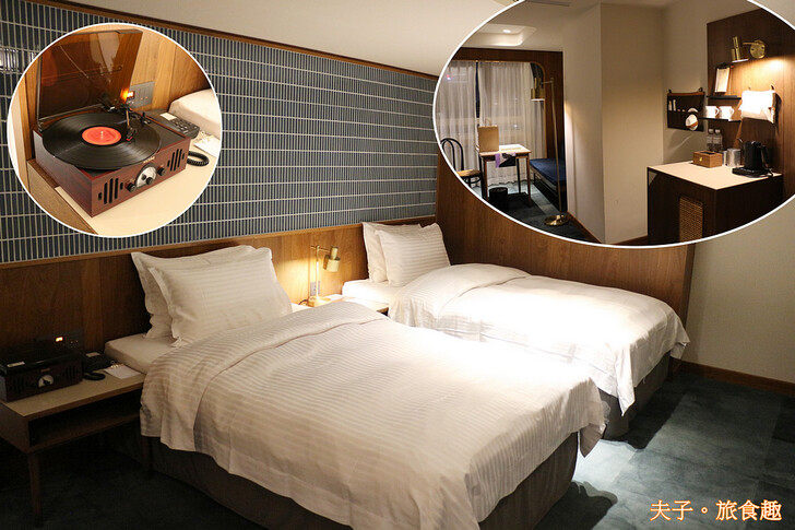 兩小床豪華客房,復古摩登風格,大面觀景窗採光充足,可俯瞰巷弄街景,二張人體工學軟硬適中的床墊附雙枕頭,柔軟乾淨的寢具組,令人自在放鬆舒適好眠。