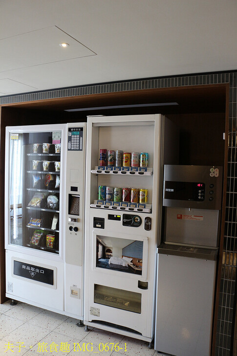 自動販賣機,販賣泡麵、點心與各式飲品,一旁有開飲機泡麵沒問題。