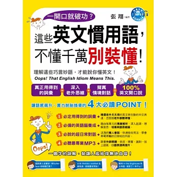 一開口就破功?這些英文慣用語,不懂千萬別裝懂!購買網址:http://www.books.com.tw/exep/assp.php/87926/products/0010642362?utm_source=87926&utm_medium=ap-books&utm_content=recommend&utm_campaign=ap-201706