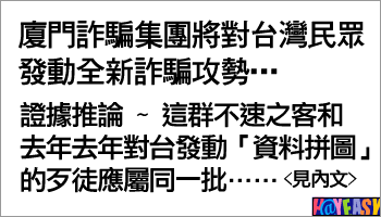 引用文章廈門詐騙集團將對台灣民眾發動全新攻勢─PayEasy的急切呼籲與提醒