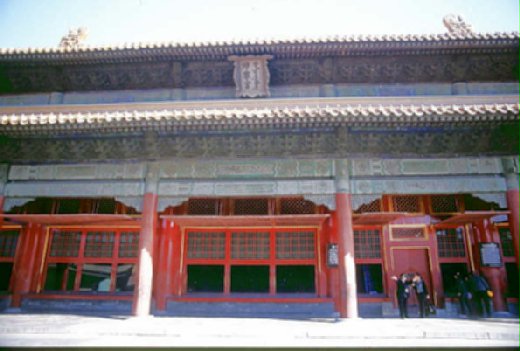 交泰殿再靠後,內廷後三宮共同奠基的小露台已將行到底,眼前的建築近似於乾清宮,但規模略小些,這就是明代及清初皇后的寢宮──坤寧宮。