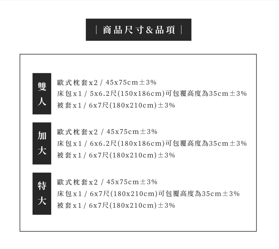 床包 6x6.2尺(180x186cm)±3%,可包覆高度35cm±3%