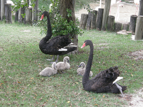 黑天鵝 (Black Swan)爸爸媽媽忙著照顧3隻灰色的小天鵝,根本沒空理我,