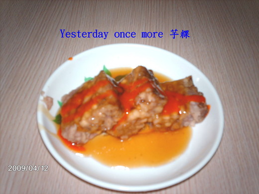 老闆的媽媽輕巧地用小鐵鏟切了3片在小盤子裡,再淋上自製的調味醬,Oh my god ! 芋頭絲的鬆軟綿密入口即化,溶入肉燥的香味,