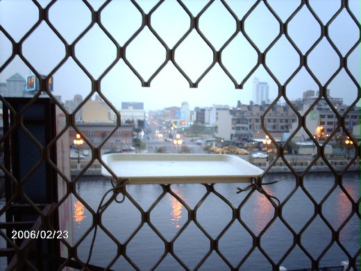 我看著架在那整排窗戶外的鐵窗,怎麼樣都會照到鐵窗,勉強把照相機伸出鐵窗縫,顫顫驚驚的怕手一鬆相機掉下去,哪裡還有辦法照相 ?