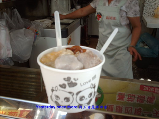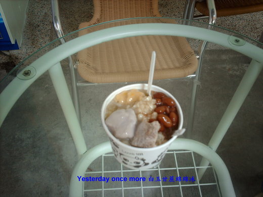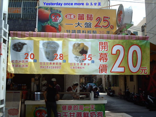 今天走在熱鬧的街頭,原本想吃個飯後水果: 旗津特產薑汁蕃茄,所有商店有志一同的居然從35元調漲到50元,有點不願意當凱子心態作祟,那麼換吃冰好了 !
