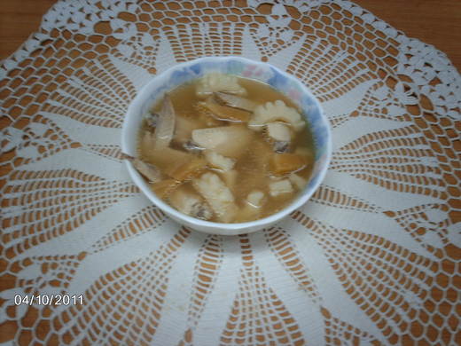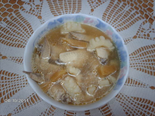 連湯帶料的鳳梨醬和小魚乾先入鍋,用1公升水煮10分鐘,加入切塊的苦瓜再煮10分鐘,最後把雞翅下鍋煮5分鐘,大功告成,香噴噴的原汁原味的鳳梨苦瓜雞翅湯可以上桌了。