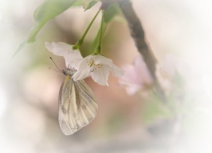 白櫻,初綻的嬌豔吻上