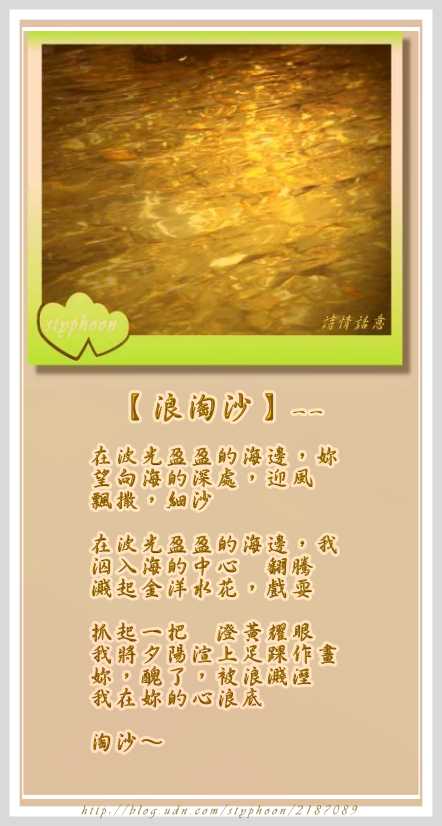 註:相識滿天下,知音有幾人。不若心內浪淘沙