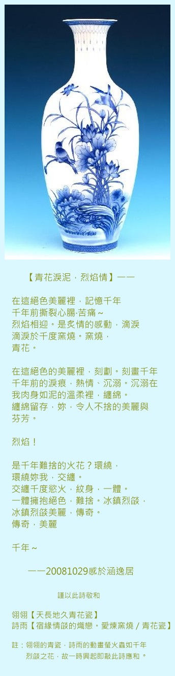 - 2樓. 絕塵詩雨 ●╮2008/10/31 22:39愛煉窯燒/青花瓷,燄炙,忘返於歷史剎那……