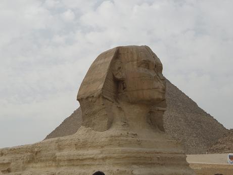 接下來讓ㄚ今很興奮,因為要去看人面獅身像。在許許多多的電影、電視裡,看到那讓人捉摸不定的人面獅身像,總是想像它是個巨人,是個駐立在金塔前護衛著法老王金字塔的大神。