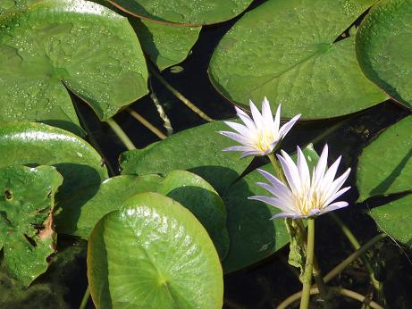 這個花園廣場並不大,如果說是花園,並不太恰當,沒什麼花,是以許多的石雕布置而成的廣場,但這些石雕並不是模子打造的,也不是仿造品,都是歷史悠久的真品,從全國各地運來此地展示的。勉強說得上是花的,是博物館正門口的一個水池裡栽種的蓮花,而水池中間有一塊小小島,上面生長了紙莎草,據說,這二者的結合,象徵著埃及的民族大融合。