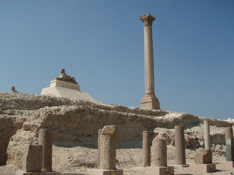 不到3.5小時就抵達了亞歷山大港,隱隱約約中似乎聞到了海的味道,是的,是浪漫的地中海的味道。但第一站來到了一個非常不浪漫的地方──孔索加法地下墓穴,看到「墓穴」二個字,怎麼浪漫得起來,不禁讓人覺得毛毛的,有些人甚至怕怕的!