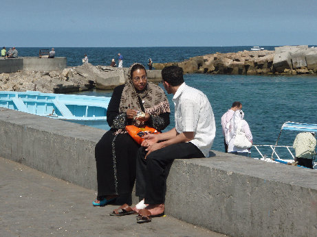 來到了「地中海珍珠」的亞歷山大已快二個小時,只是聞到淡淡的海味,一直沒看到地中海,而旅遊嘛,似乎都得來個到此一遊、拍照留念,所以特別安排到一處佇立於地中海邊的魁特貝碉堡前快快拍照,這雕堡並不能參觀,只能遠觀,只能當作照片裡的背景,只是讓地中海看起來不是那麼單調罷了。