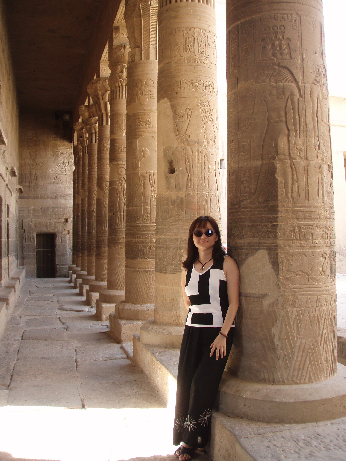 今天的重頭戲是伊希斯神殿,位於費拉島上,既然說是「島」了,如果不是有跨水橋可抵達,就得搭船過去了,而費拉島就屬後者了。因此,下了車後走過了充滿販賣紀念品小攤販的小徑,導遊招來了一艘船,大家紛紛跳上船。但是,往其他船上一望,發現有些歐美人士都穿了橘紅色的救生衣,而我們呢?此時只能自我解嘲:他們比較怕死,我們比較勇敢囉!可是回頭想一想,雖說只有十分鐘的船程,萬一真發生意外了,只能說sorry,但那卻是終生的遺憾了。